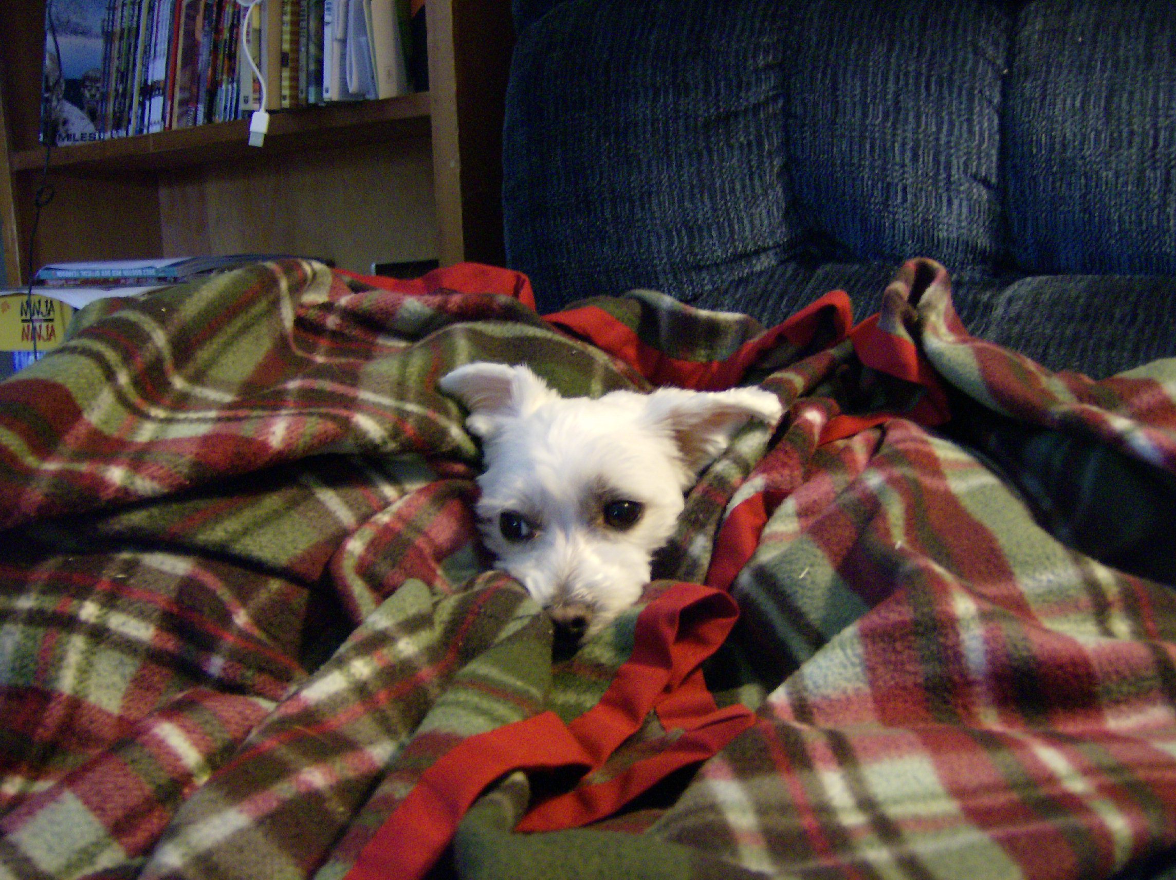 My dog is doing this devastatingly adorable thing right now where, while sitting on my lap, he tucks his little nose just under the side of my arm and snoozes.  I’d like to think it’s because he adores the shit out of me, but in reality it’s probably because the poor little bastard is freezing, given I haven’t broken down and turned on the heat yet.