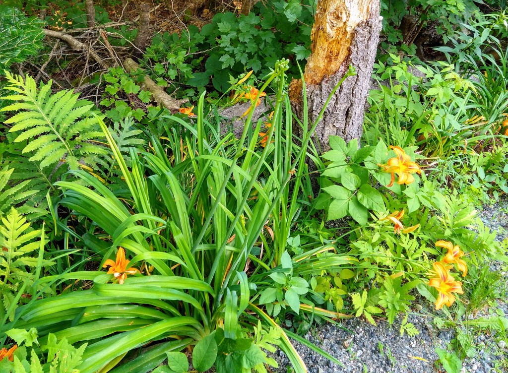 Fast forward through a spring and summer of various dramas big and small. Today is the last day of August and we’re on the precipice of another round of darkness. The smell of autumn is in the air even though it’s 78 degrees out. The dog and I tootled around the edge of the driveway in our normal manner earlier: him with his nose to the ground and me with my face to the sky, both of us enjoying the sunshine while we could. As we came along the side of the stone wall I noticed a very out of place flash of crimson in the otherwise solidly green underbrush. A cardinal maybe? We had scarlet tanagers most of the summer but they’ve headed south by now. The red wasn’t moving at all though and that’s not the way of most birds. I leaned over so I could get a better look, then gasped. There in the middle of a tangle of wild blackberry brambles, oak, and beech saplings, was a single blood-red geranium flower head sticking up proudly. It was small but it was unmistakable, with several of the tell-tale frilly and fuzzy bright green geranium leaves right next to it.